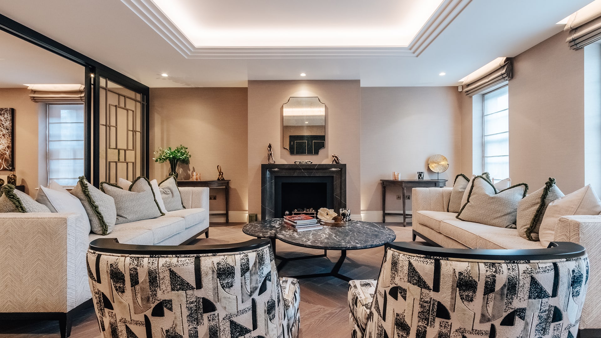 Our deliverables: Lutron Lighting system designed with bespoke engraved Alisse Keypads in metal finish chosen by client, Control 4 centralised controlled audiovisual system including multi-room audio and a 12 seater basement cinema.