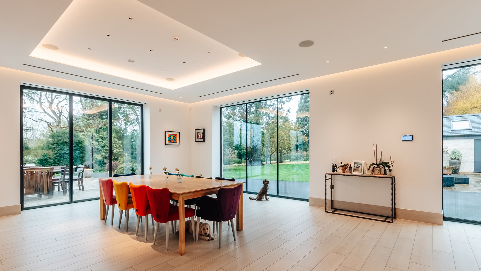 Client brief: Create the best of the best, discrete in room control of lighting, 4K/UHD video, multi-room audio, heating, cooling and external control of outdoor living with full security and Network/WI-FI integration.